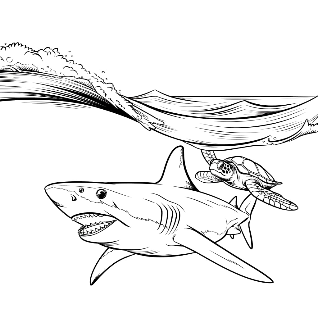 Mewarnai Gambar Hiu dan penyu laut