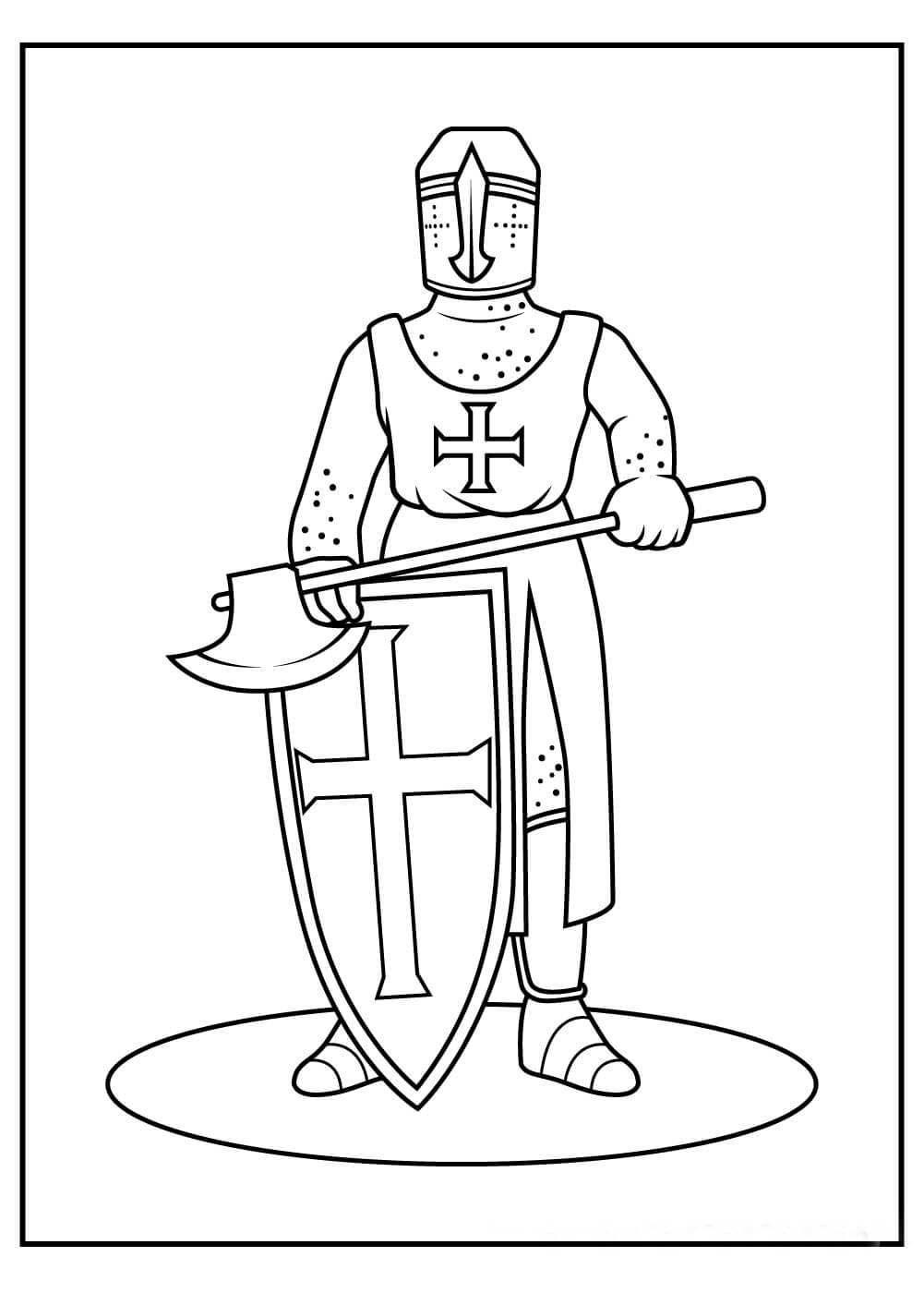 Mewarnai Gambar Ksatria Memegang Kapak dan Perisai