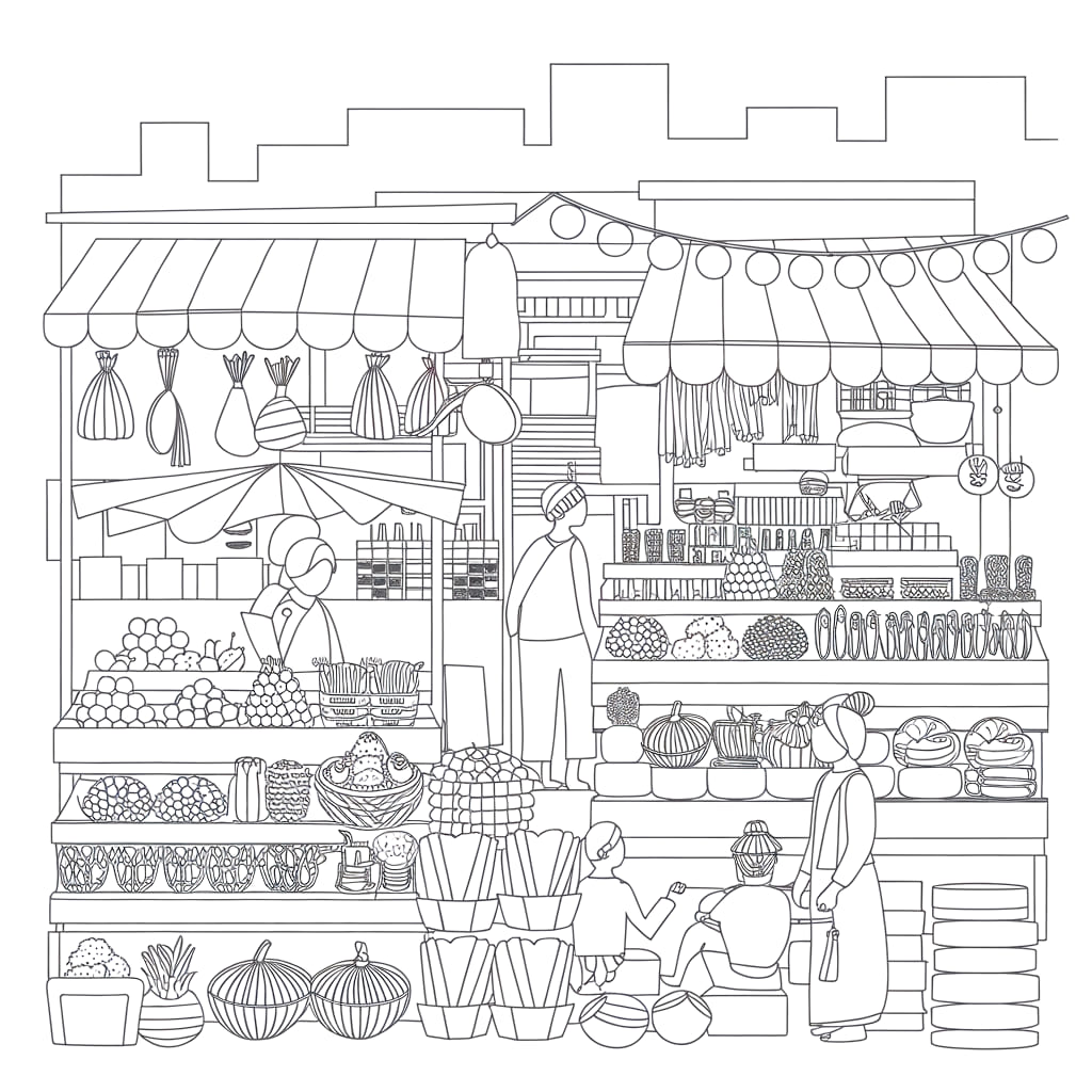 Mewarnai Gambar Banyak kios di Pasar