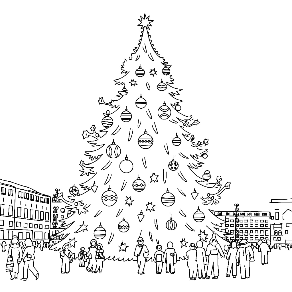 Mewarnai Gambar Orang dengan Pohon Natal besar