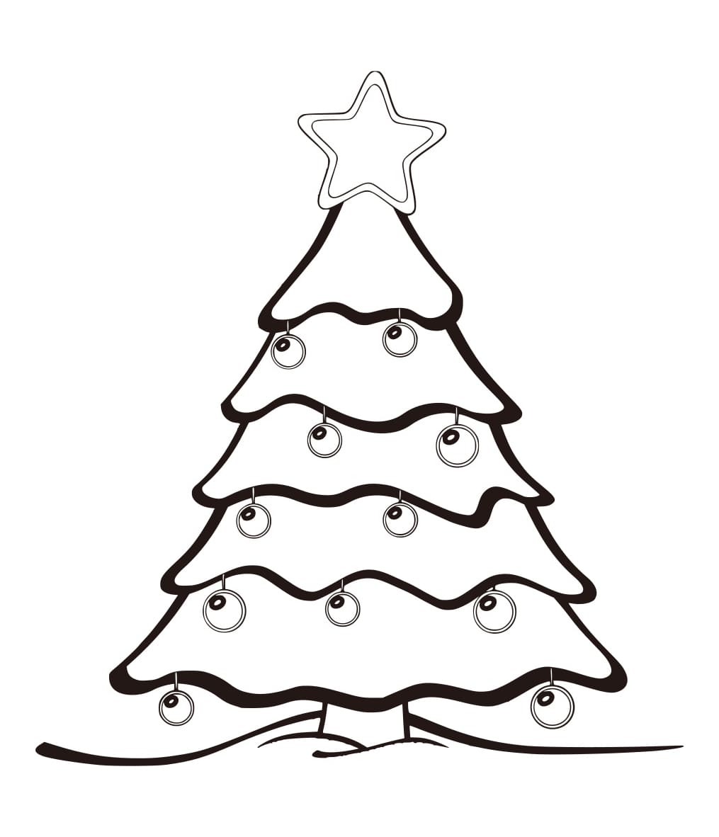 Mewarnai Gambar Pohon Natal dengan Bintang dan Sebelas Bohlam