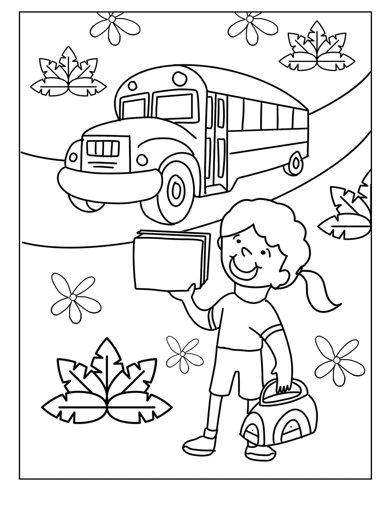 Mewarnai Gambar Dua Gadis Menyenangkan Pergi ke Sekolah