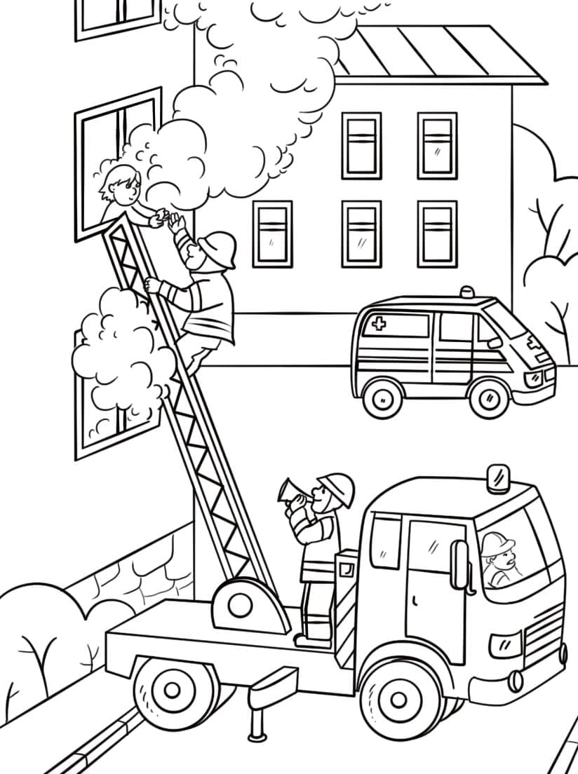 Mewarnai Gambar Pemadam Kebakaran dan Truk Pemadam Kebakaran